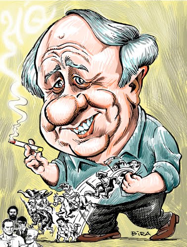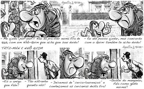 Com a falta da gaita, o velho cartunista não parava de falar.