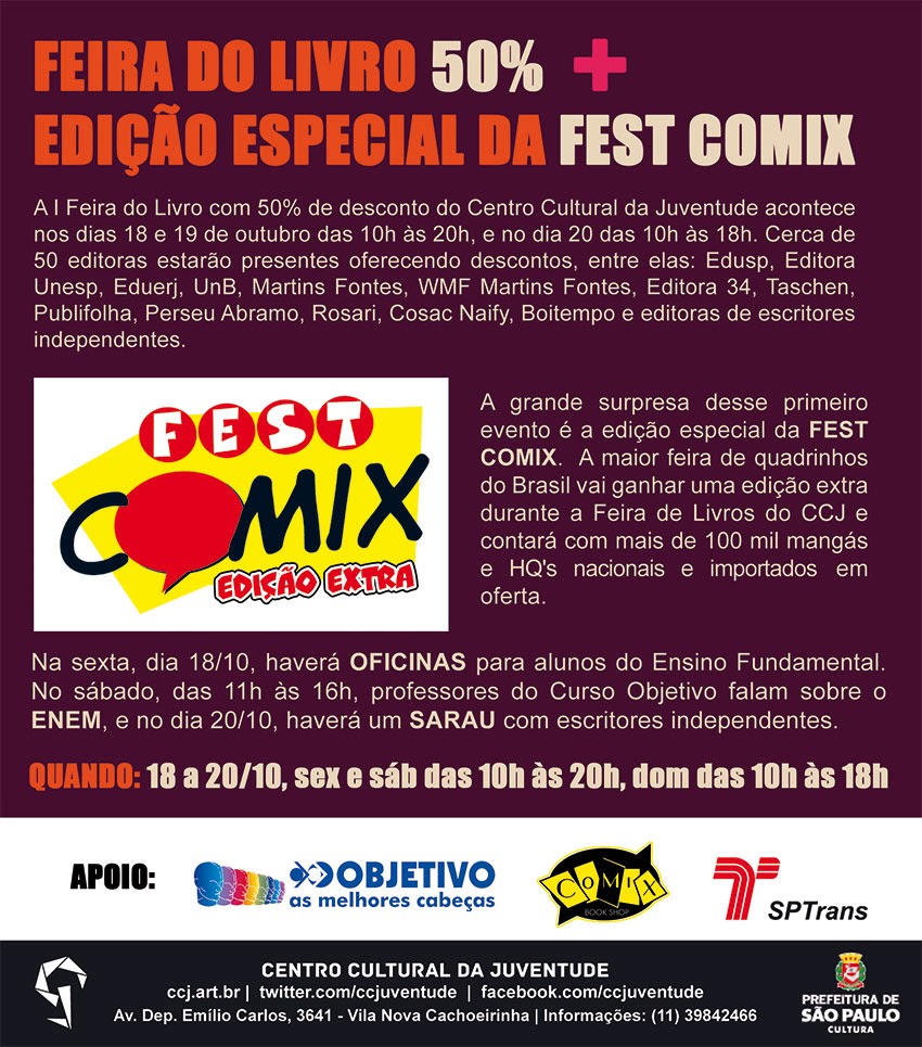 09h às 20h –Mostra de Histórias em Quadrinhos do Grupo Quadrante Sul no hall de entrada da Casa do Pensamento, com presença da Família Falcote