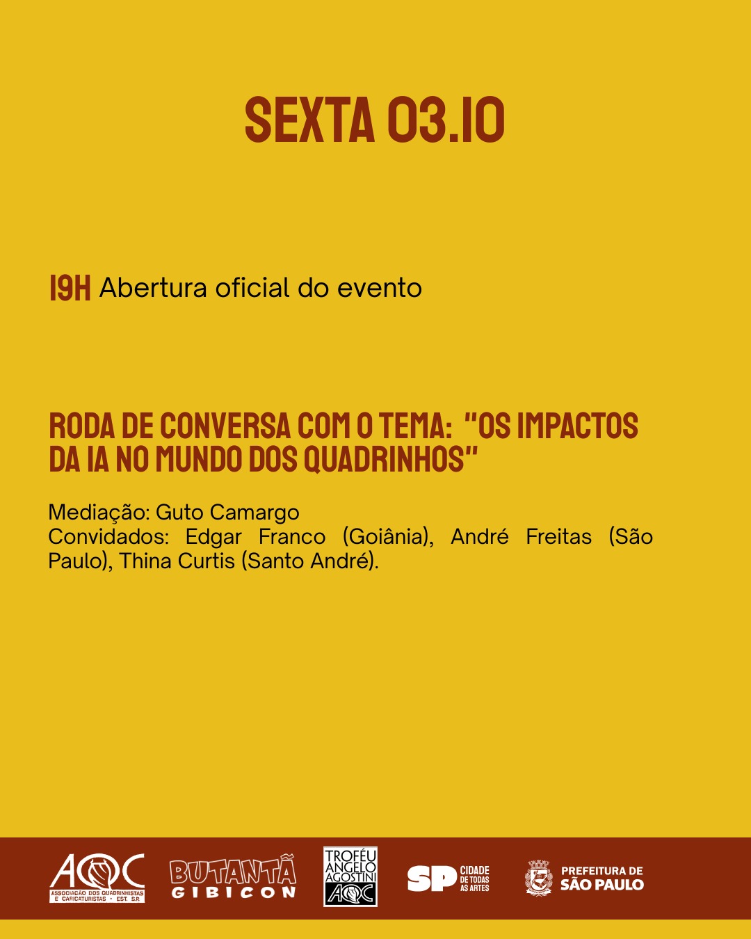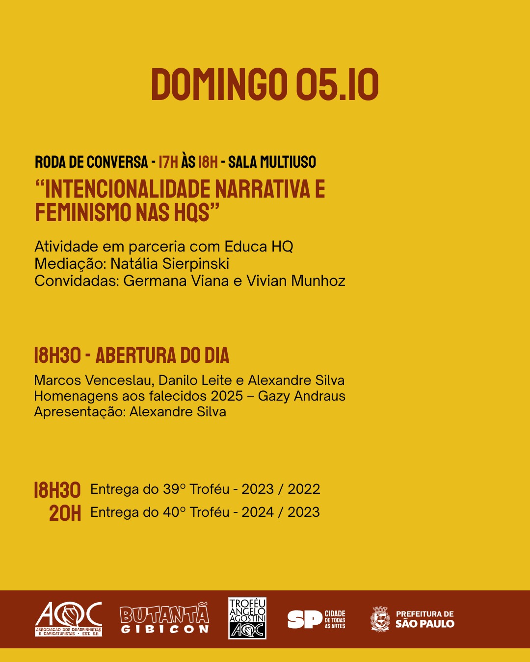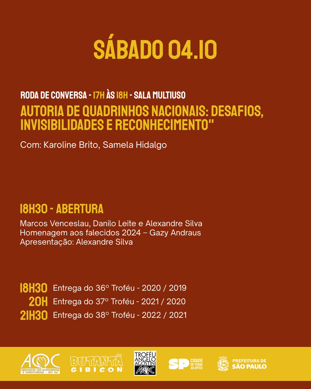 É com satisfação que a comissão organizadora do Prêmio Angelo Agostini, em parceria com o Educa HQ e a Casa de Cultura do Butantã, convida a todas e todos para a Cerimônia de Entrega do Troféu Ângelo Agostini, promovida pela Associação de Quadrinhistas e Caricaturistas do Estado de São Paulo (AQC-ESP).