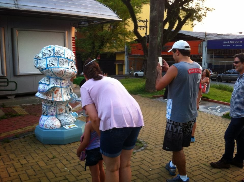 “Estou impressionado com a repercussão do Projeto #monicaparadeVárias pessoas com as quais conversei no último domingo, na Parada Inglesa disseram que passaram por várias partes de Sampa, visitando as Mônicas e fotografando. Vi muita alegria nas pessoas, elas estavam impressionadas com a iniciativa. Foi bacana porque contei como pensei na “minha” Mônica, na homenagem a cerca de 80 personagens de Quadrinhos Brasileiros em quase 150 anos de história… Eles curtiram saber, mas estavam indignados com os atos de vandalismo. Bem, vcs já tinham nos preparado, faz parte… O principal é o prazer de fazer parte desse projeto que acabou mobilizando a cidade em torno dos… 50 anos da “baixinha, dentuça de vestido vermelho” mais famosa do Brasil. Depois da presidenta Dilma, claro (rs)!”