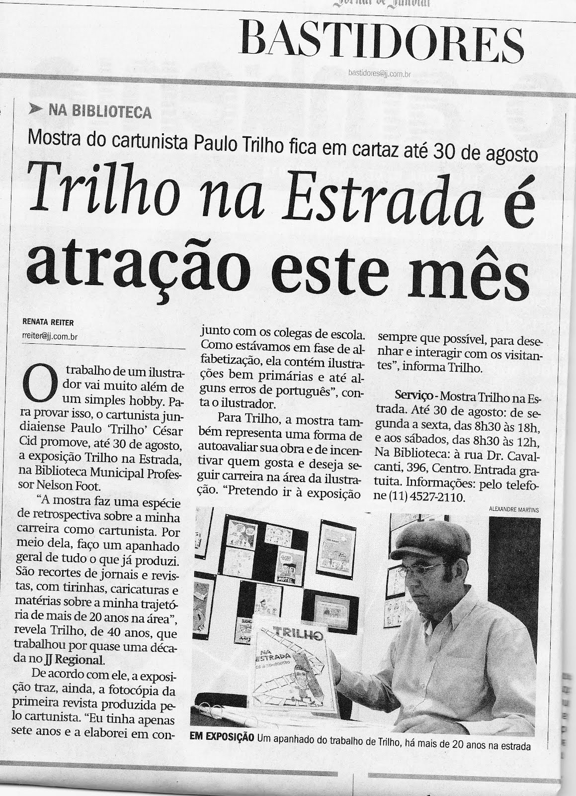 Biblioteca Pública Municipal, Complexo Argos Av Dr Cavalcante, 396 Centro, Jundiai-SP Fone: (11) 4527.2110 De 01 a 30 de agosto. Mais detalhes no Blog do Cartunista: http://www.bloggdotrilho.blogspot.com