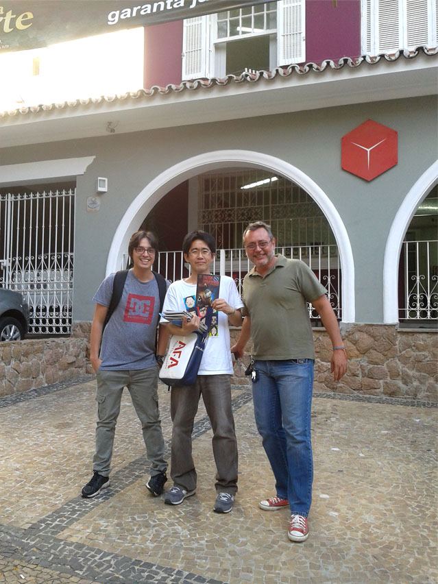 Ele esta’ surpreso com a hospitalidade e camaradagem brasileiras, Klebs Jr foi busca-lo no Host em que ele esta’ hospedado e depois de fazer uma turne pela Esocla-Estudio, o levrou a Livraria HQ Mixqualidade de trabalhos de artistas como Lelis, Andre Diniz, Artur Matuek e Rodrigo Okuyana, entre outros.